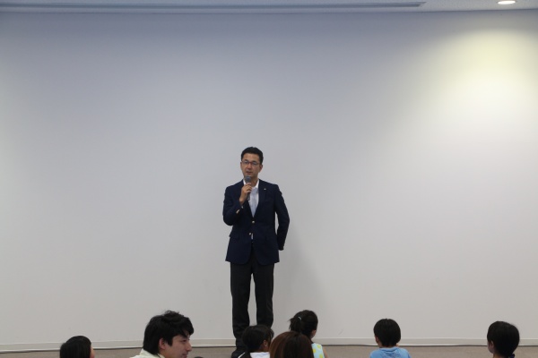 トヨタ紡織労組のファミリー映画祭であいさつをしました。