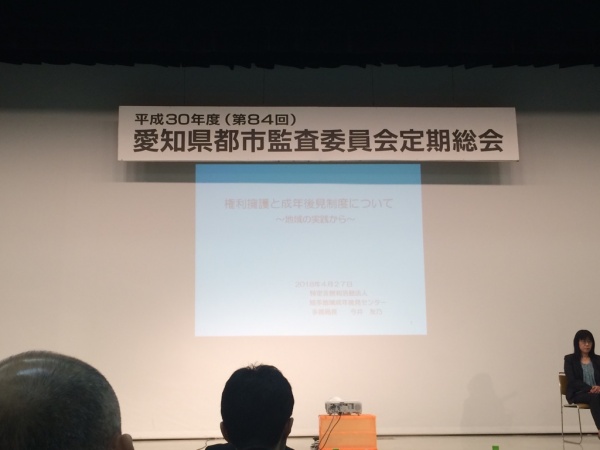 関係各位の祝辞や昨年度の決算、次期総会の開催地などが承認された後、成年後見制度に関する講演が行われました。