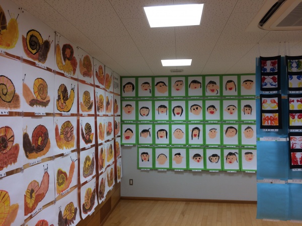 あおば保育園の作品展示の様子。