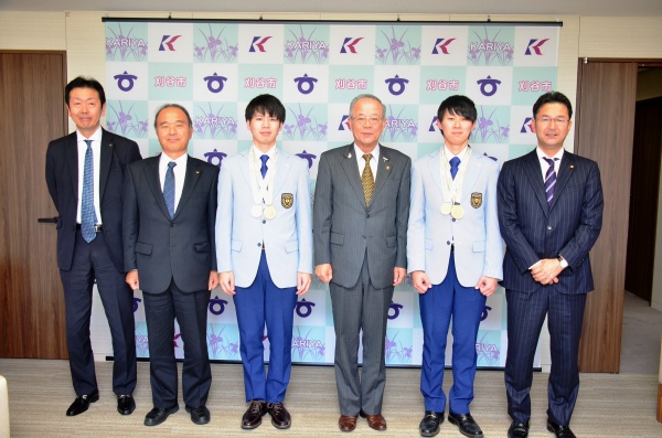 先月14日~19日にUAE(アラブ首長国連邦)で開催された第44回技能五輪のメカトロニクス部門で、私が勤務するトヨタ紡織㈱から出場した岡野選手と佐藤選手が金メダルを獲得し、本日竹中市長を表敬訪問しました。