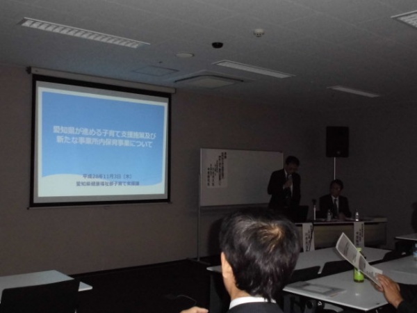 テーマは子育て支援、講師は愛知県健康福祉部子育て支援課の皆さんです。