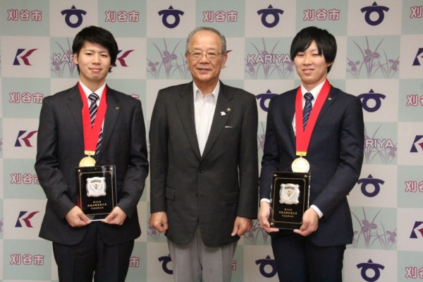 本日、快挙を成し遂げたご両名と関係各位が刈谷市役所を表敬訪問しました。